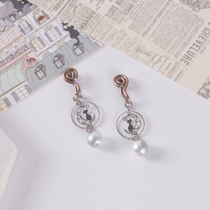 【Lacat】雙色夜貓 無痛耳夾 – 銀