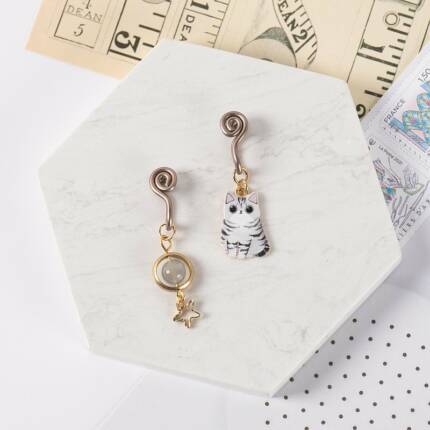 【Lacat】黑貓白貓異色瞳不對稱無痛耳夾