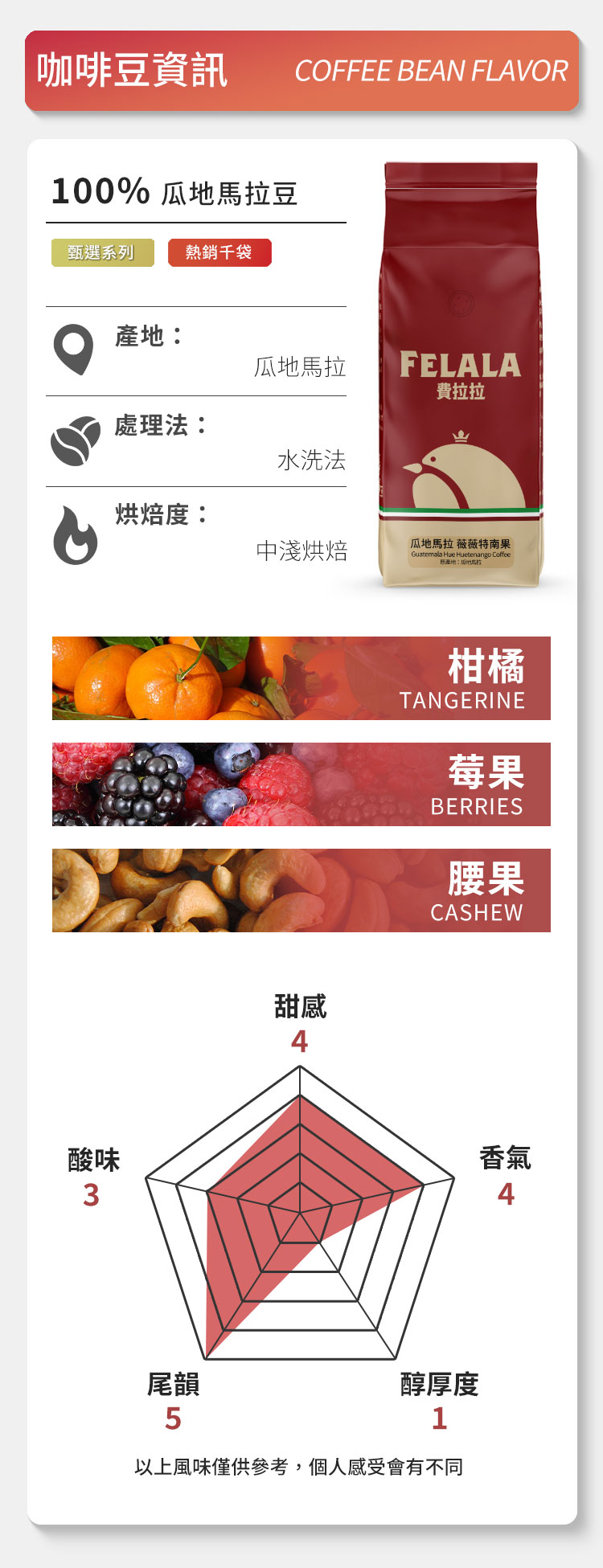【費拉拉】【中淺烘焙】瓜地馬拉 薇薇特南果 咖啡豆 共有 9 則評價