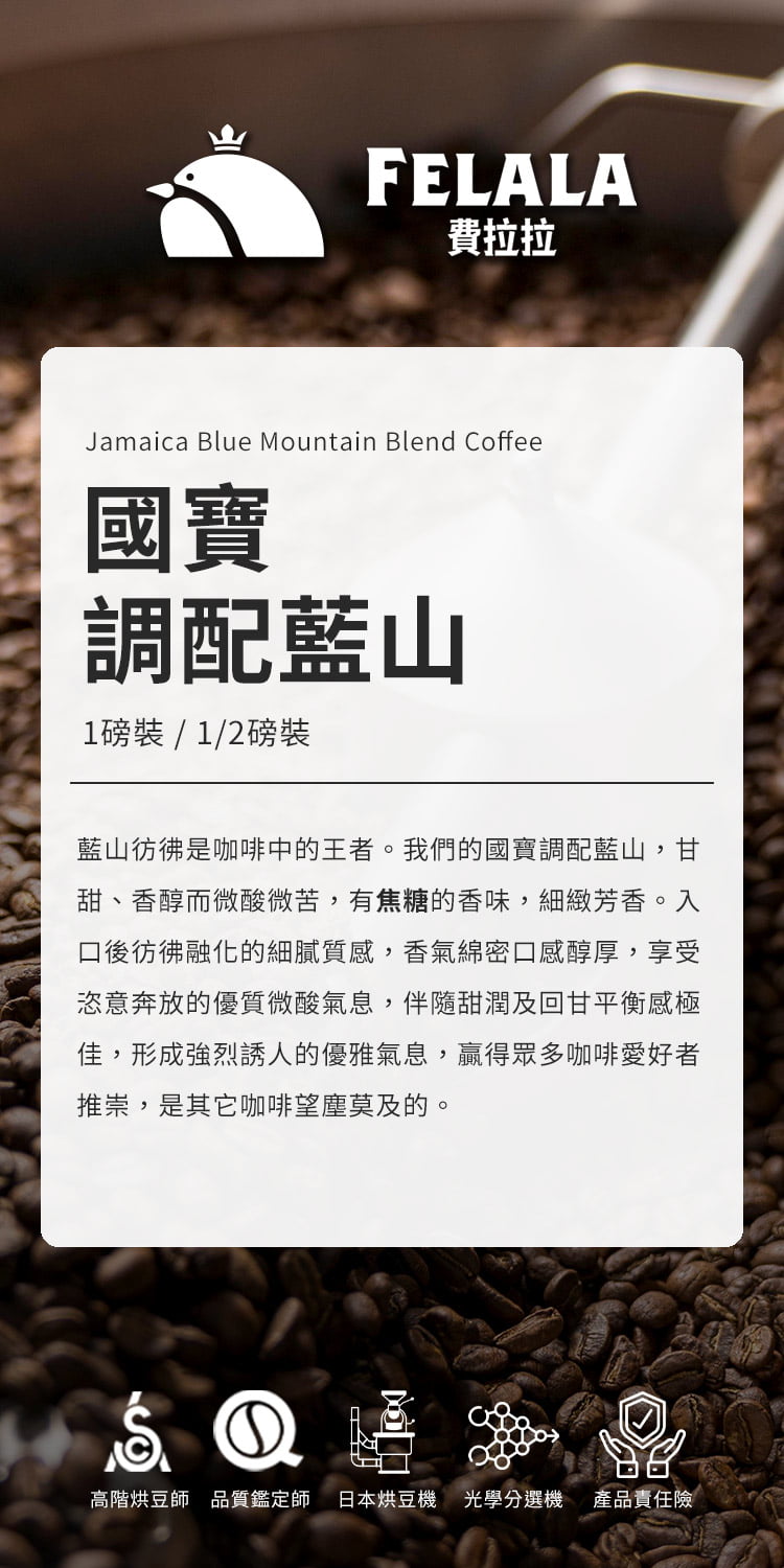【費拉拉】【中烘焙】國寶 調配藍山 咖啡豆 共有 7 則評價
