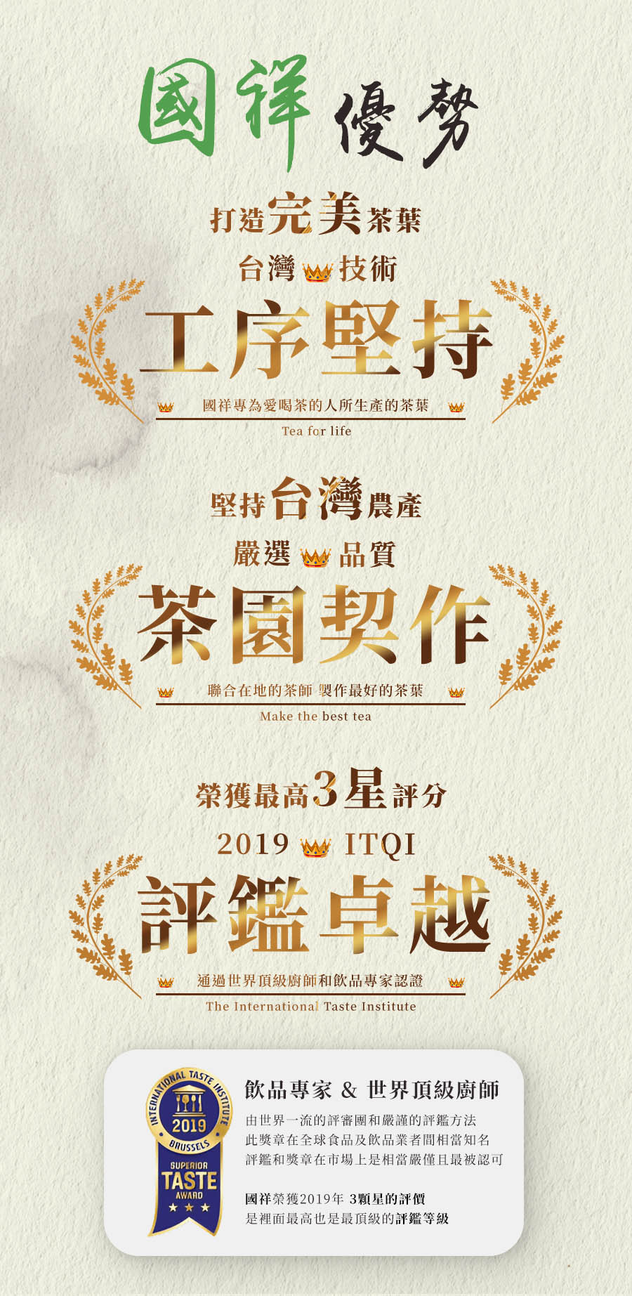 台灣製茶技術保證品質,PET網紗茶包安心。榮獲國際3星評鑑,品質超群