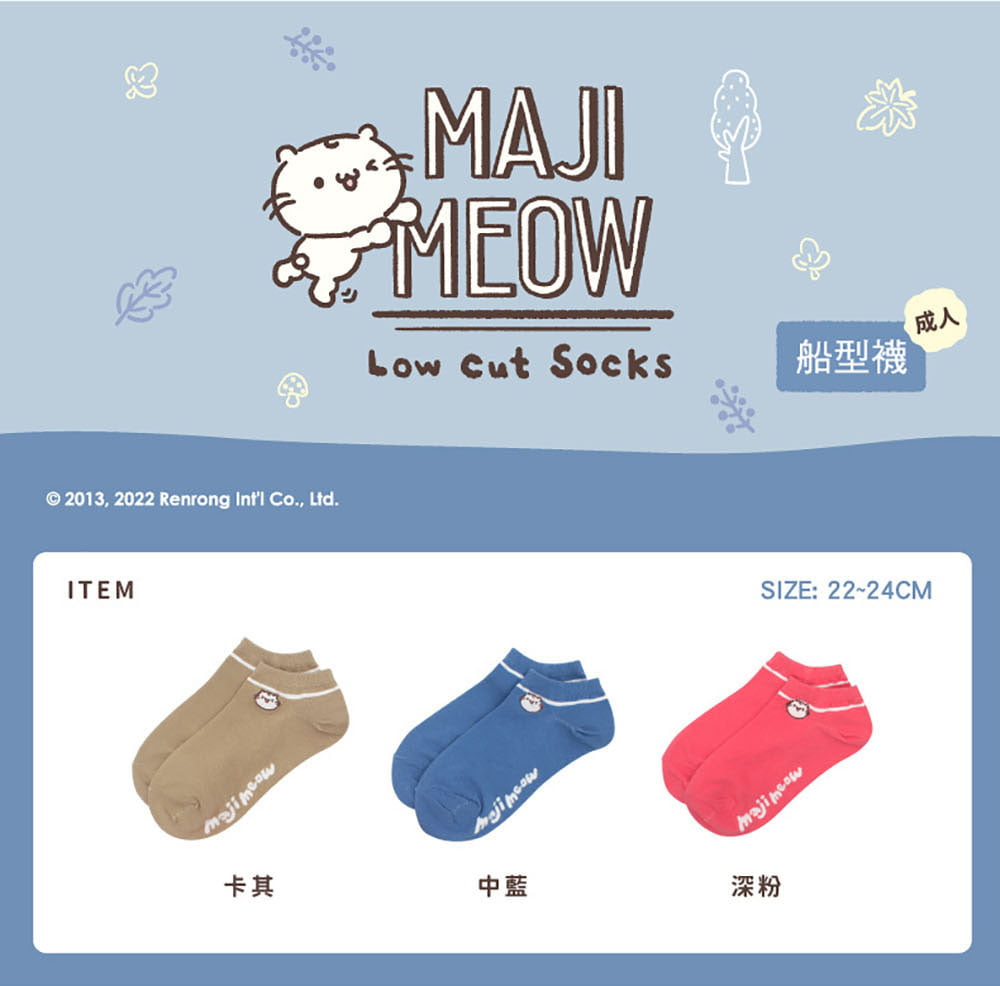 【正版授權】【麻吉貓】刺繡復古船型襪 22-24cm