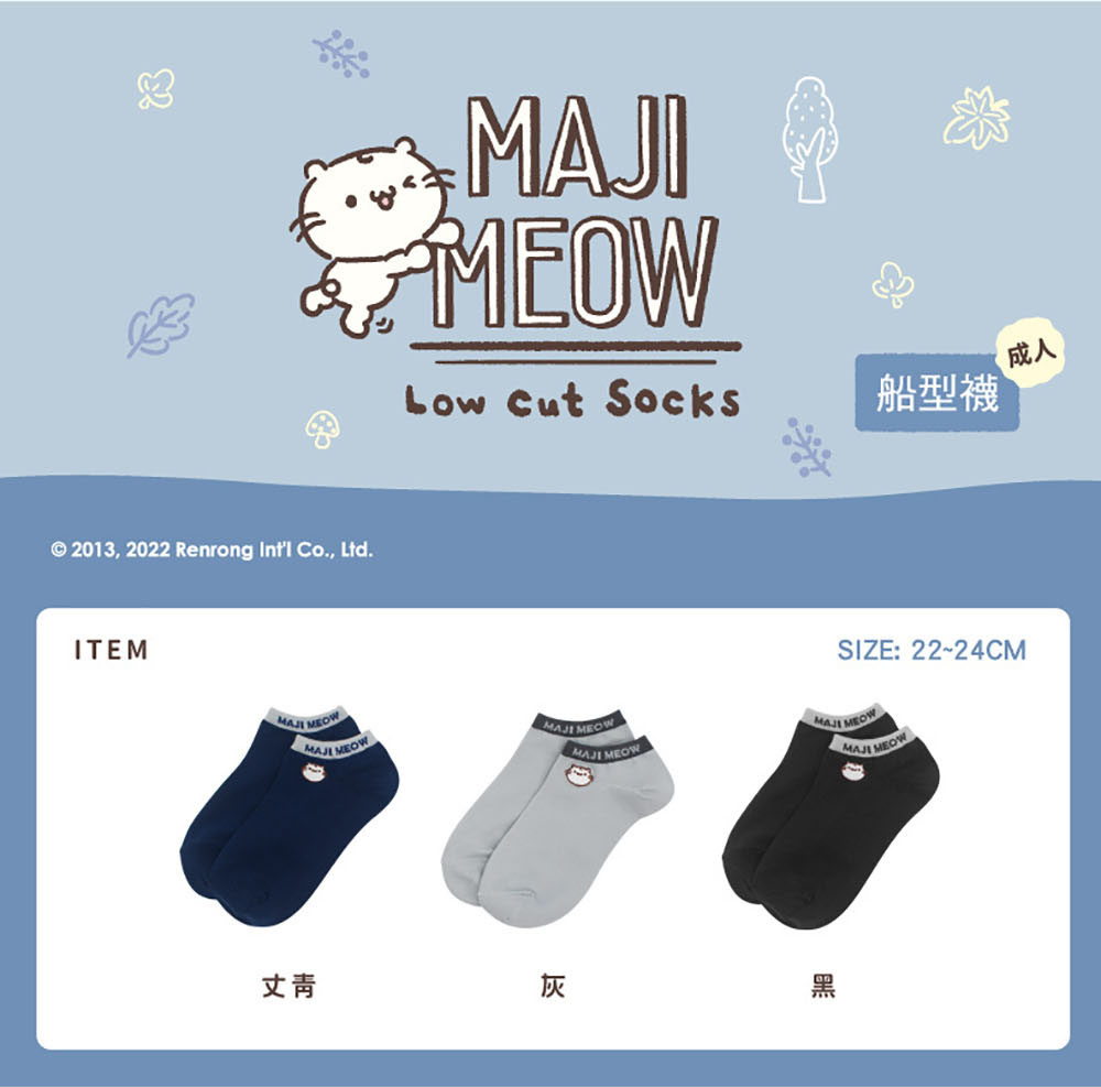 【正版授權】【麻吉貓】刺繡文青風船型襪 22~24cm