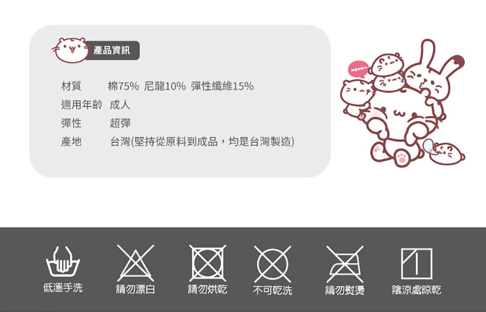 棉 75%, 尼龍 10%, 彈性纖維 15% |