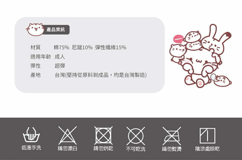 棉 75%, 尼龍 10%, 彈性纖維 15% |