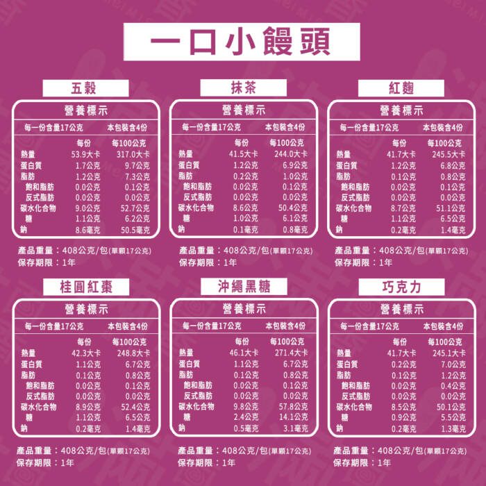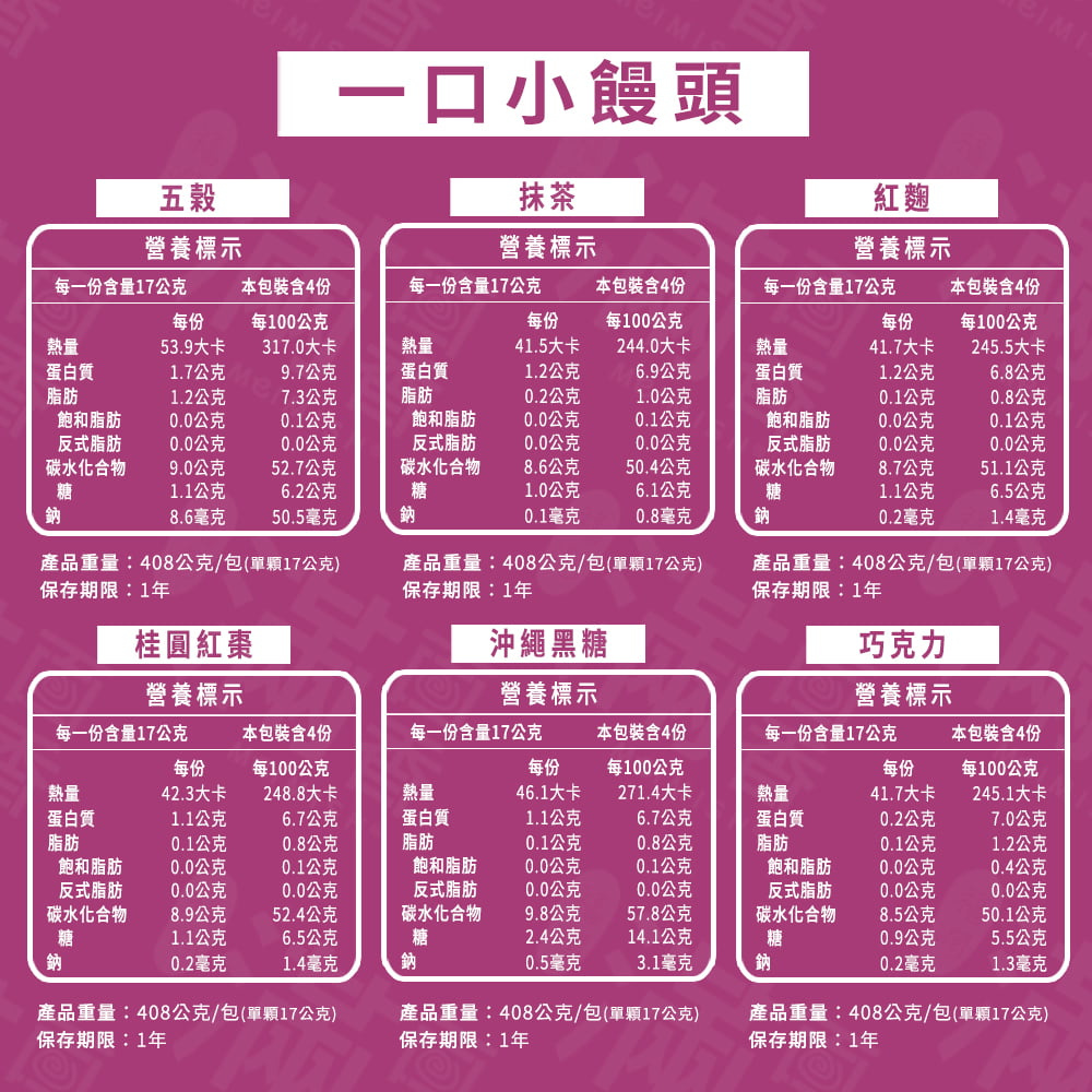 24顆/包 (紅麴×4、桂圓紅棗×4、抹茶×4、沖繩黑糖×4、巧克力×4、五榖×4) |