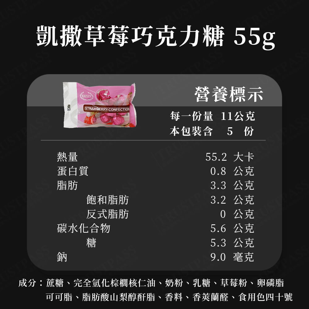 蔗糖、完全氫化棕櫚核仁油、奶粉、乳糖、草莓粉、卵磷脂、可可脂、脂肪酸山梨醇酐脂、香料、香莢蘭醛、食用色四十號鋁麗基 |