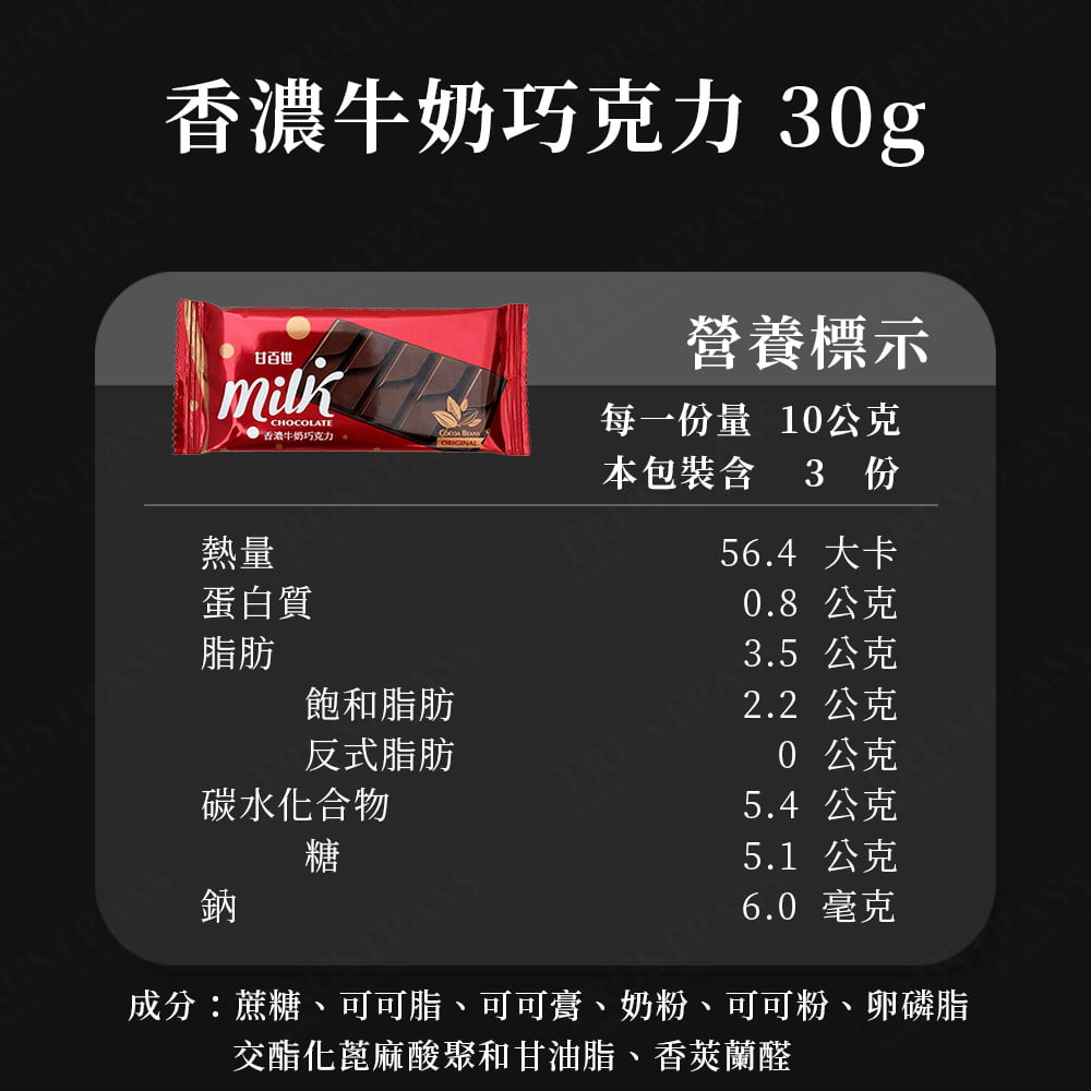 蔗糖、可可脂、可可膏、奶粉、可可粉、卵磷脂、交酯化蓖麻酸聚和甘油脂、香莢蘭醛 |