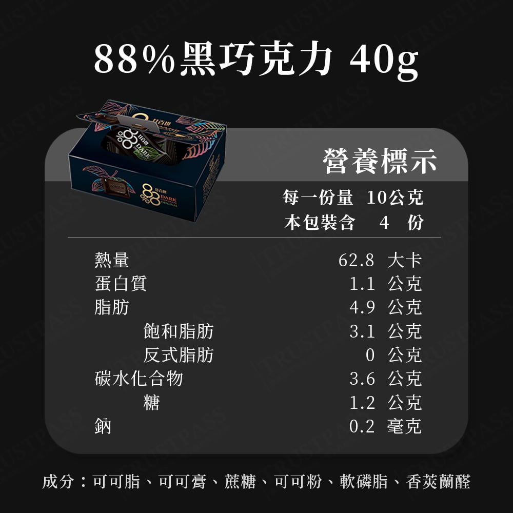 高達88%的可可含量,帶來濃烈而深邃的黑巧克力風味