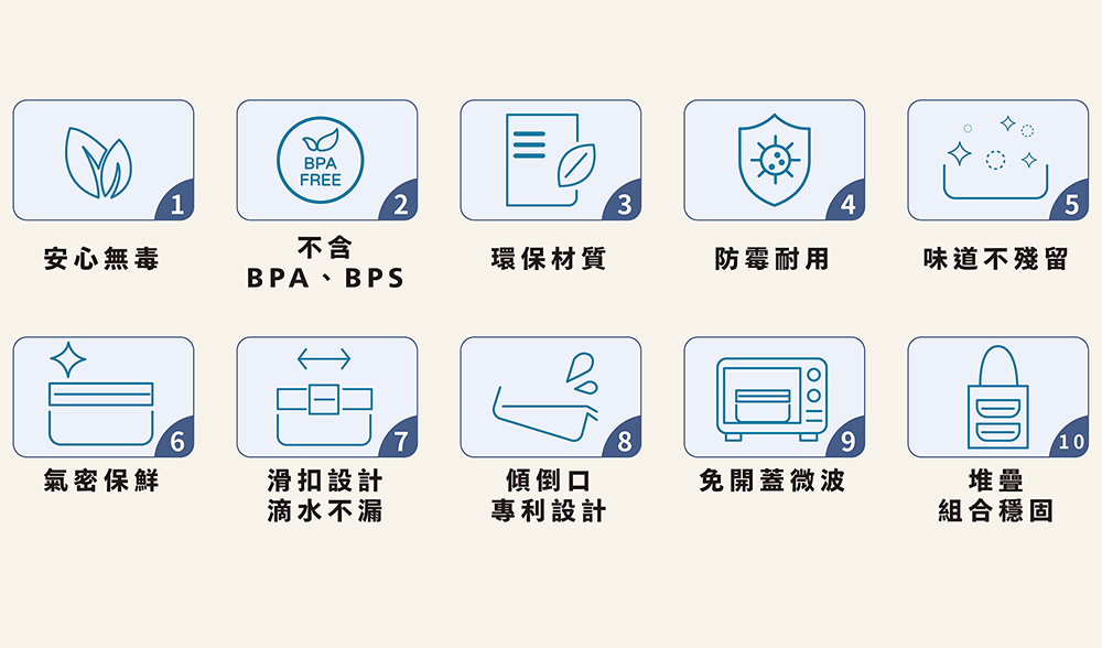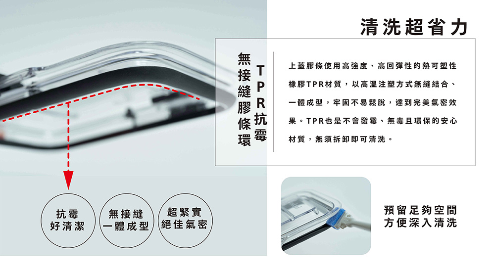 上蓋&保鮮盒本體(Tritan)、滑扣(ABS)、上蓋膠條(TPR)