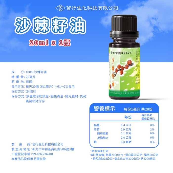沙棘籽油嚴選德國進口100%沙棘籽油,富含80%以上不飽和脂肪酸