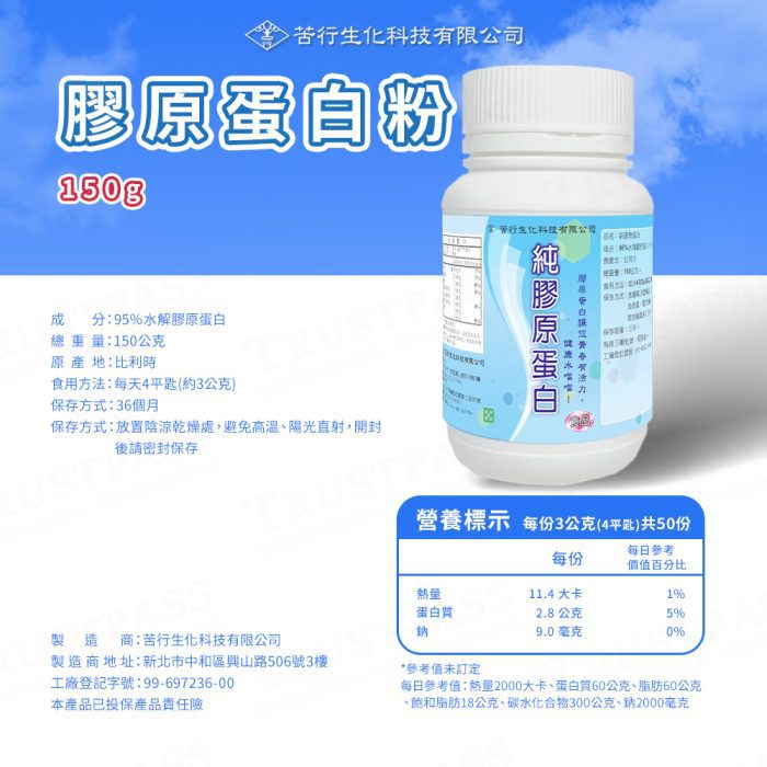 本款採用比利時進口的高品質豬皮萃取,經過精製處理,讓你輕鬆吸收