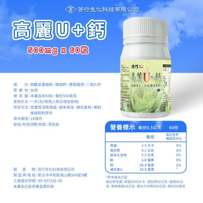 搶先評價 “【苦行生化】高麗U+鈣 (500mg x 60粒)”
