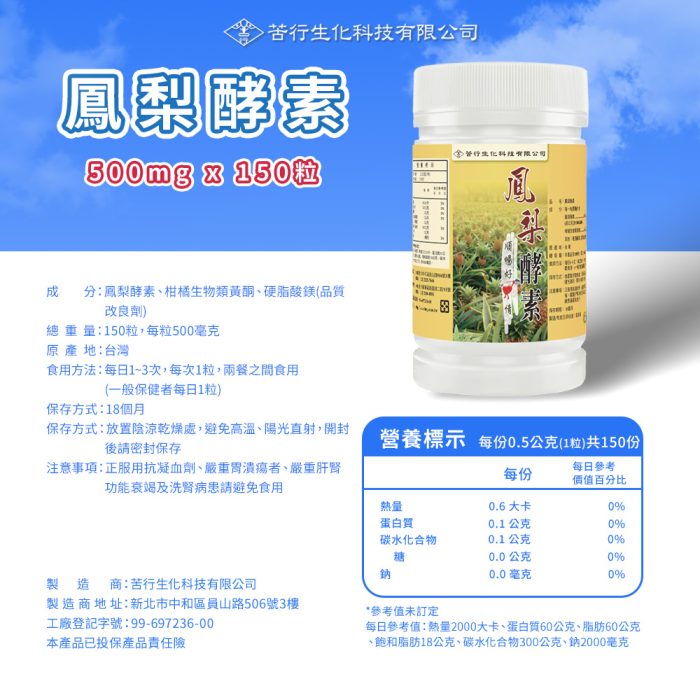 搶先評價 “【苦行生化】鳳梨酵素膠囊 (500mg x 150粒)”