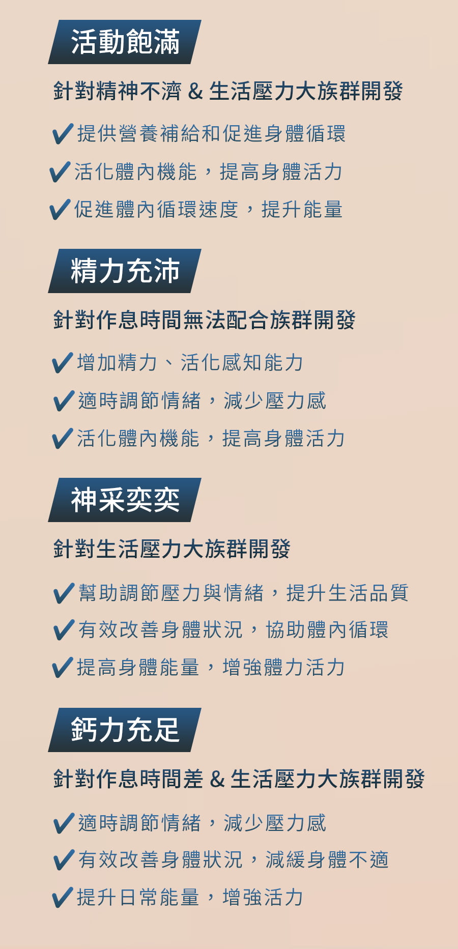 針對精神不濟 & 生活壓力大 & 作息時間無法配合族群開發