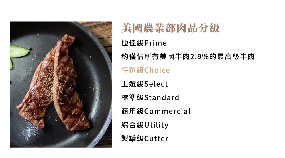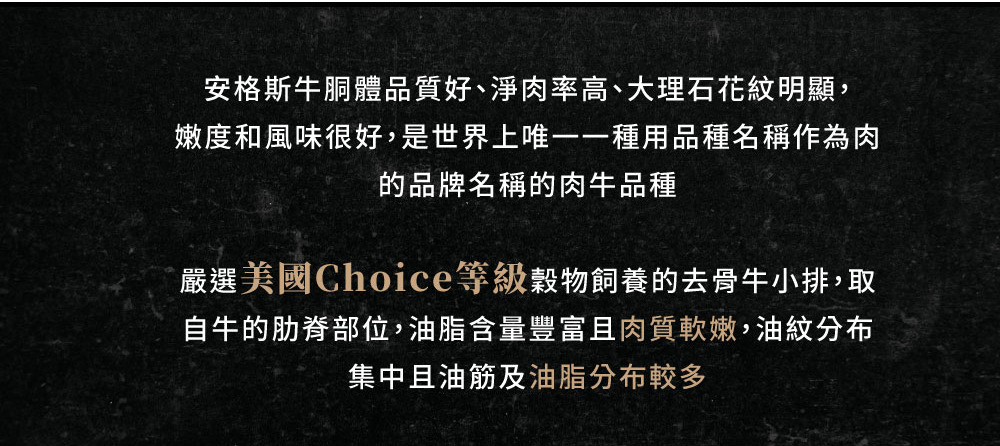 優質安格斯牛肉:穀物飼養的Choice等級,肉質嫩滑