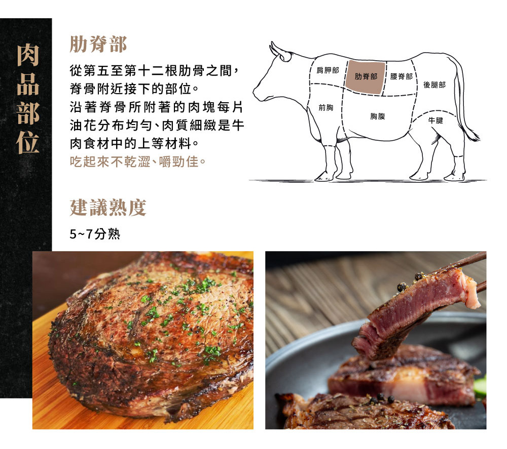 ✔️ 肋眼部位脂肪豐富,肉香四溢,口感濃郁