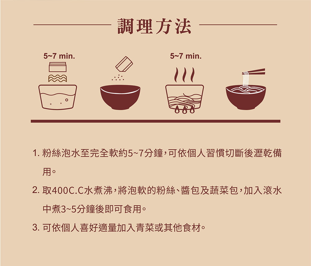粉絲:馬鈴薯澱粉、木薯澱粉、玉米澱粉、豌豆澱粉、水 |