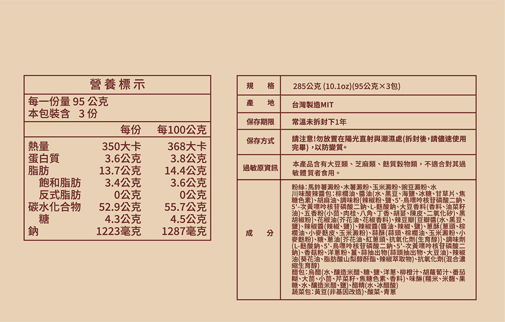 285公克(10.1oz)(95公克x3包) |
