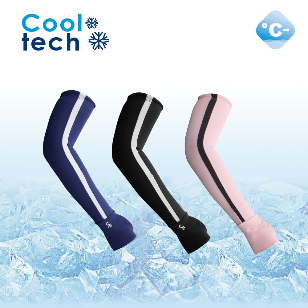 【Cerf Bell 瑟夫貝爾】CB條紋涼感指洞袖套 經典直線 防曬袖套 L/XL