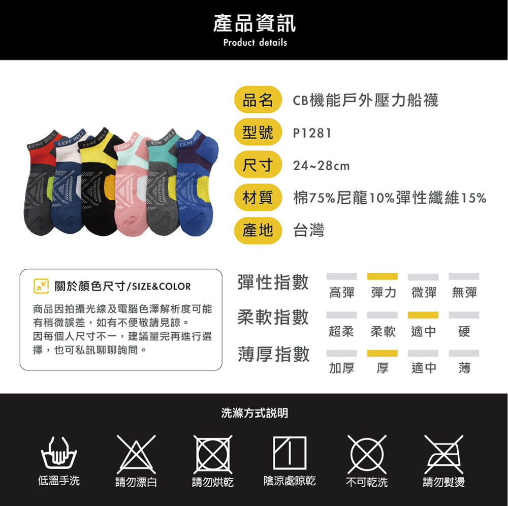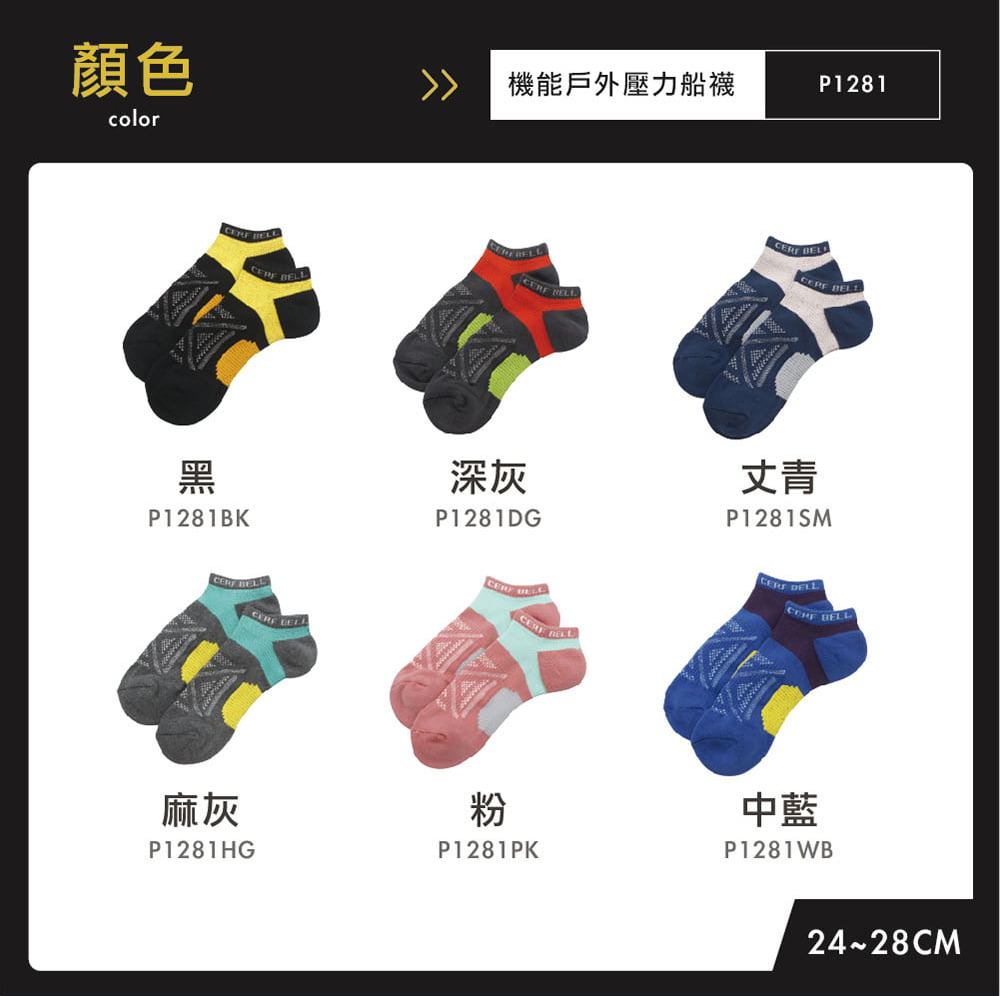 【Cerf Bell 瑟夫貝爾】CB機能戶外壓力船襪 24-28cm