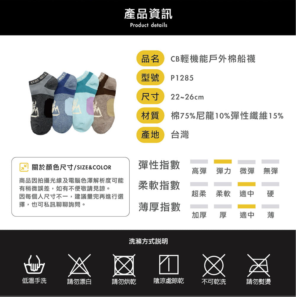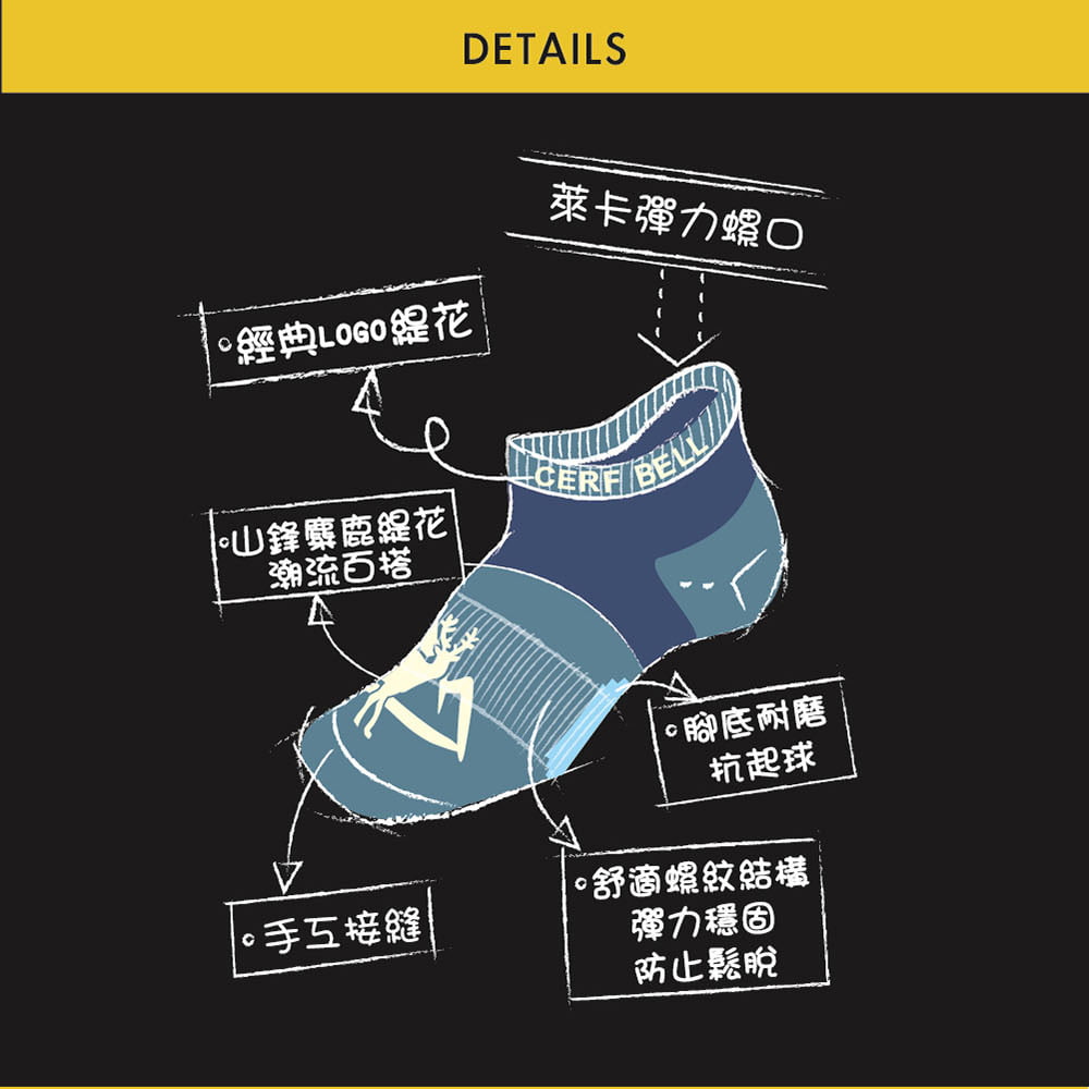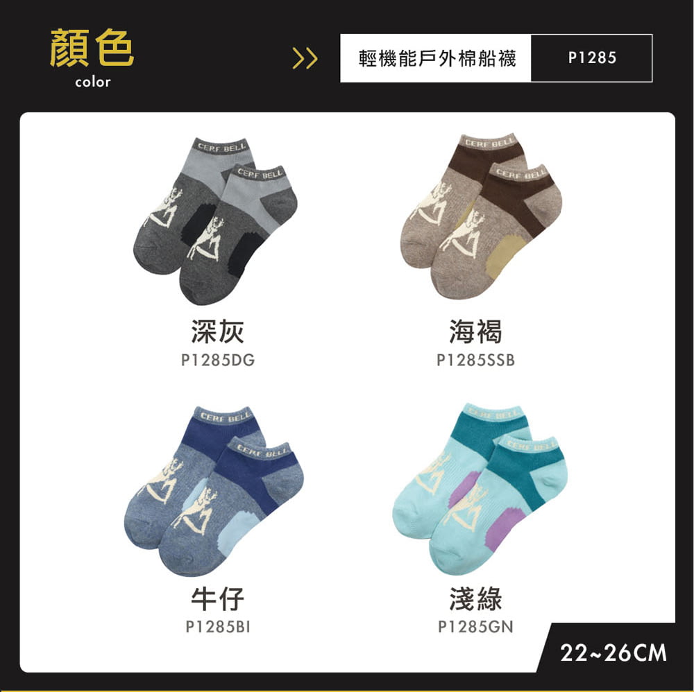 【Cerf Bell 瑟夫貝爾】CB輕機能戶外棉船襪 22-26cm