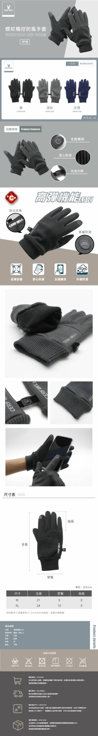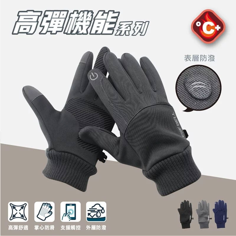 【Cerf Bell 瑟夫貝爾】CB高彈羅紋觸控防風手套