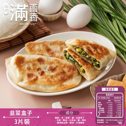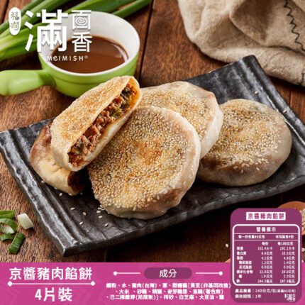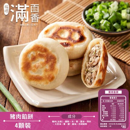 韭菜盒子 3片裝 (蔬食) ,豬肉餡餅 4顆裝 (葷食) ,京醬豬肉餡餅 4片裝 (葷食) ,厚片千層蔥油餅 3片裝 (蔬食) |