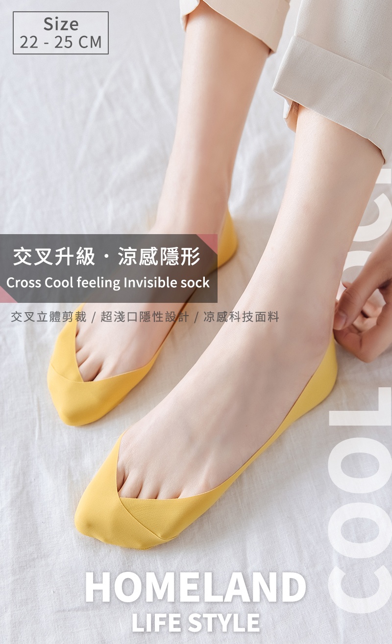 【HOMELAND】交叉升級款涼感淺口隱形襪 22-25 cm