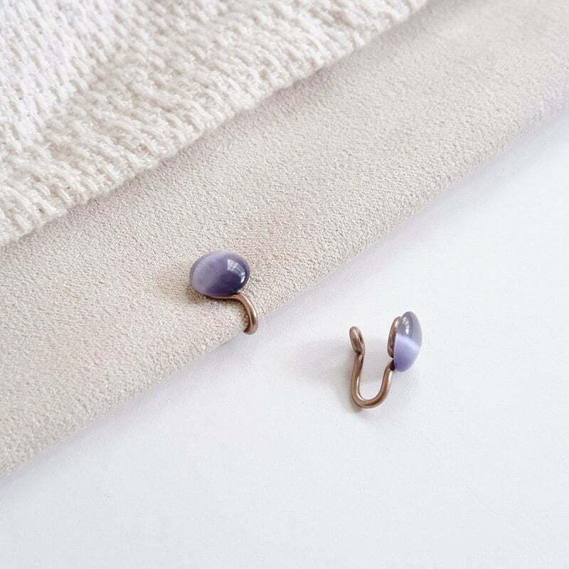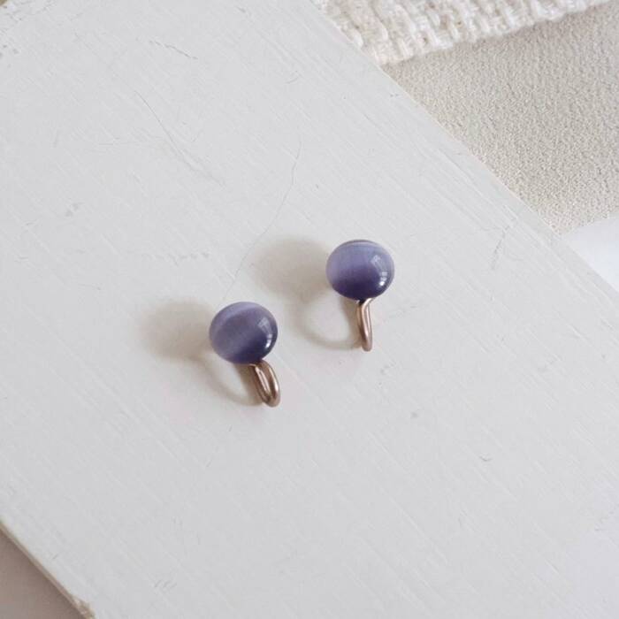 【LaCat】圓形貓眼石無痛貼耳夾 / 紫色