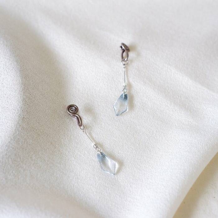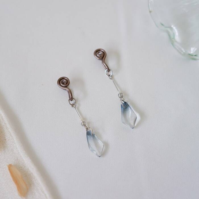 使用乾布擦拭即可。不可使用拭銀布,不可帶著泡溫泉,洗澡時盡量拿下來才可以保持耳環漂亮的樣子 |