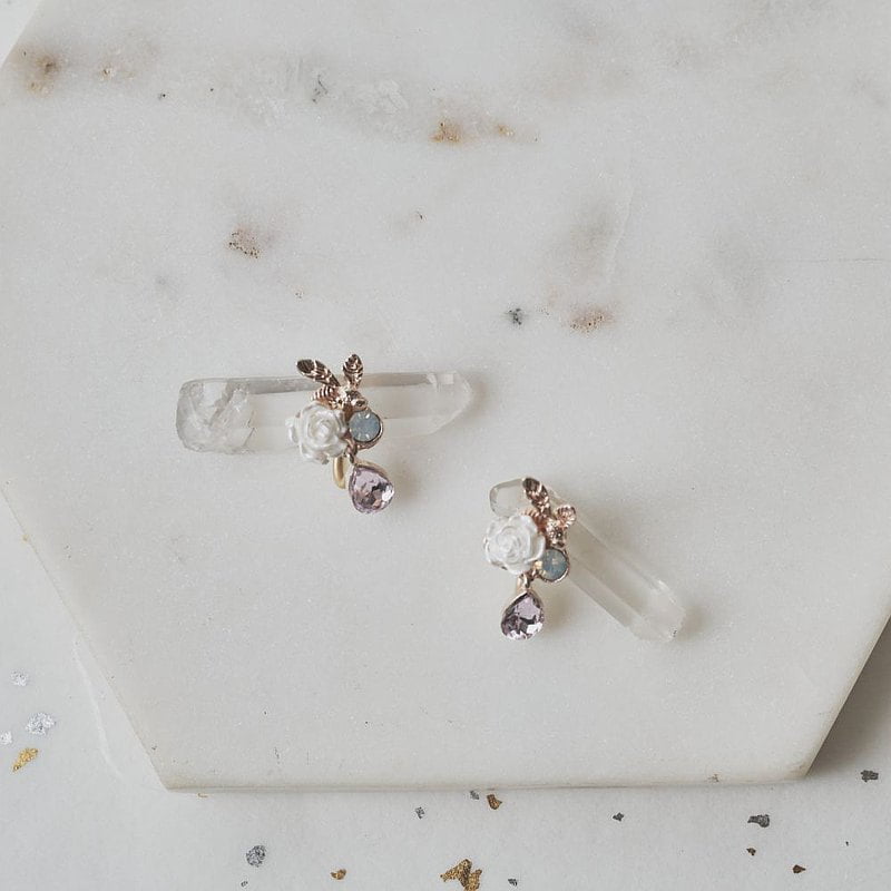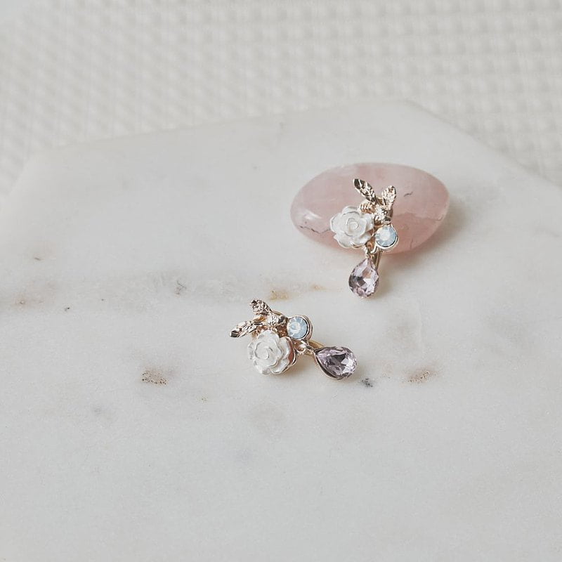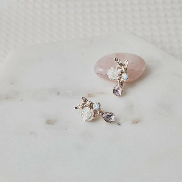 【Lacat】華麗玫瑰水滴鑽 貼耳夾