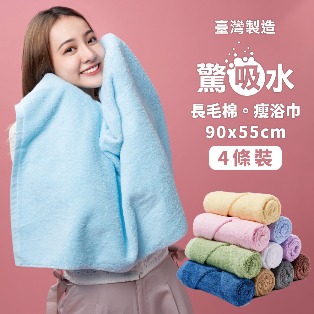 【驚吸水】雙股吸水瘦浴巾 90x55cm 4件裝
