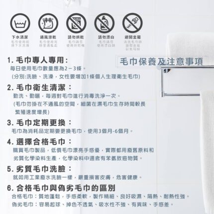 包裝良好,出貨迅速,品質不錯,洗完沒脫線也沒棉絮現象,部份家人覺得毛巾觸感ok,部份家人覺得不太習慣。