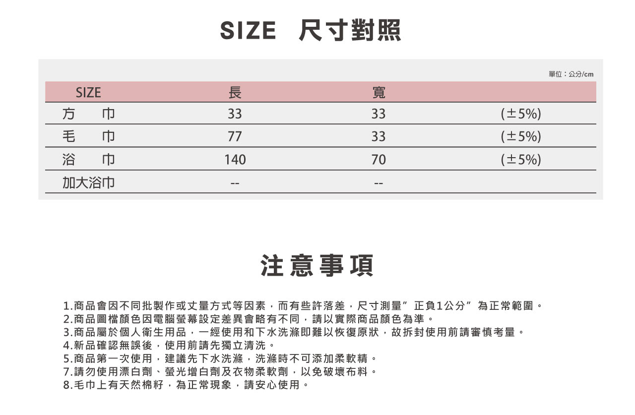 | 巾類規格 |