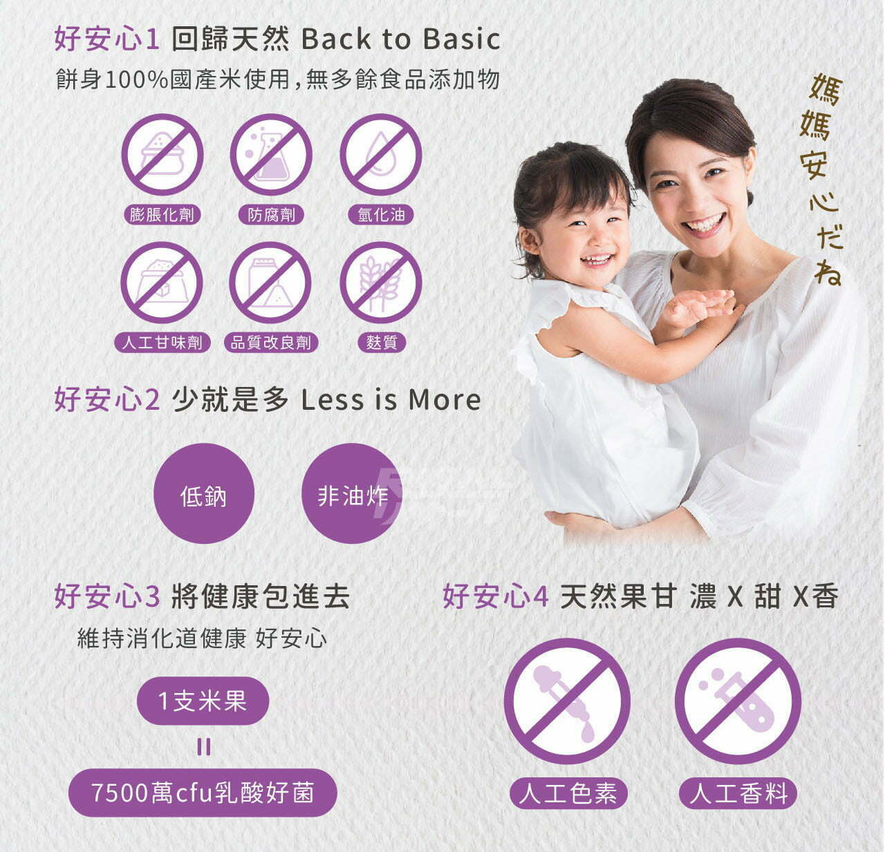 ✔️自然:100%純米製餅身、非油炸、防腐劑不使用、無添加人工色素與香料