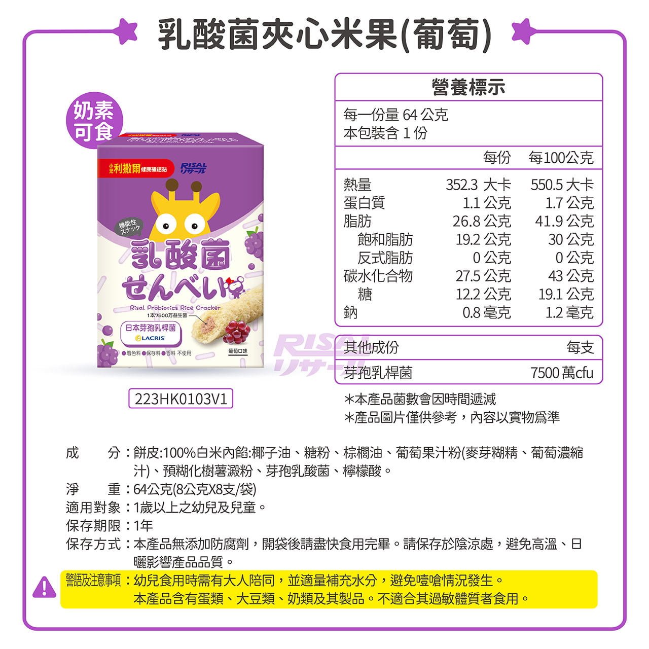 【RISAL小兒利撒爾】啾米乳酸菌夾心米果 葡萄 8入