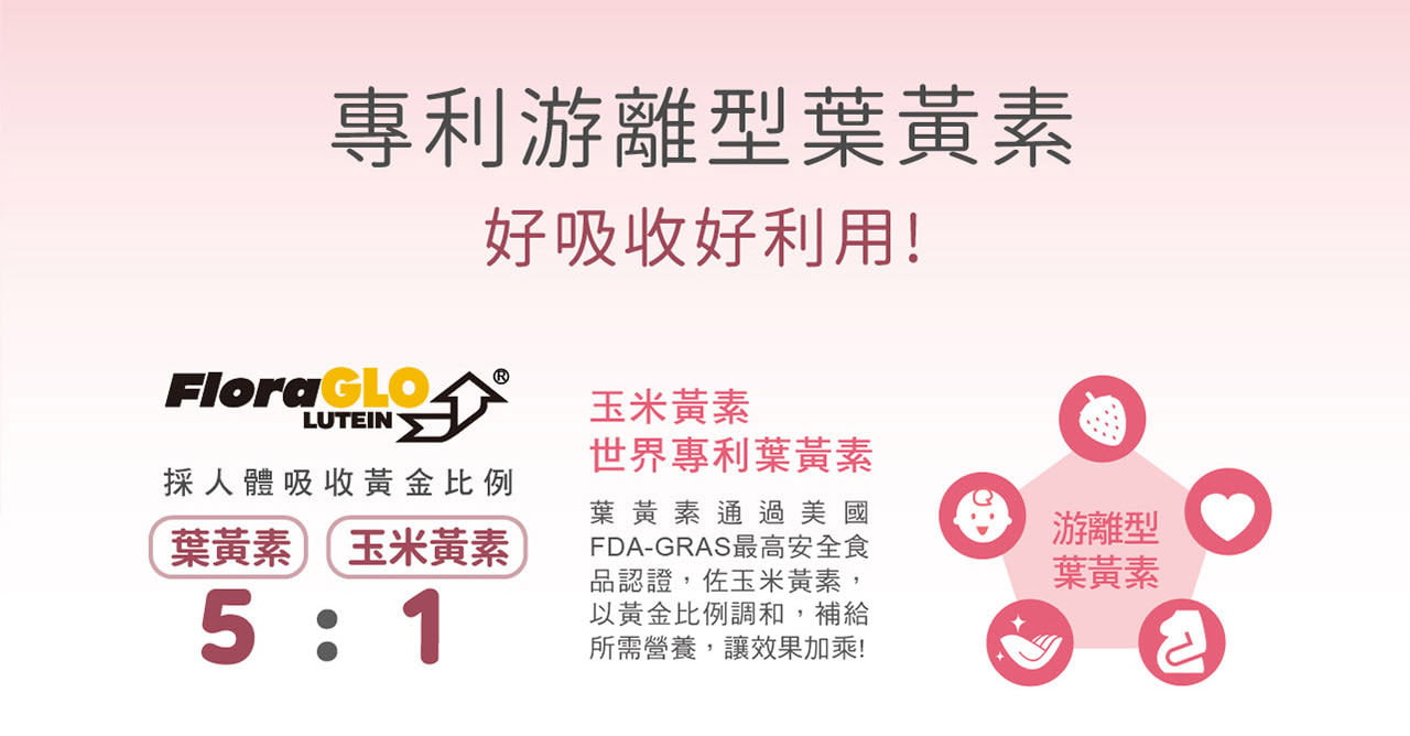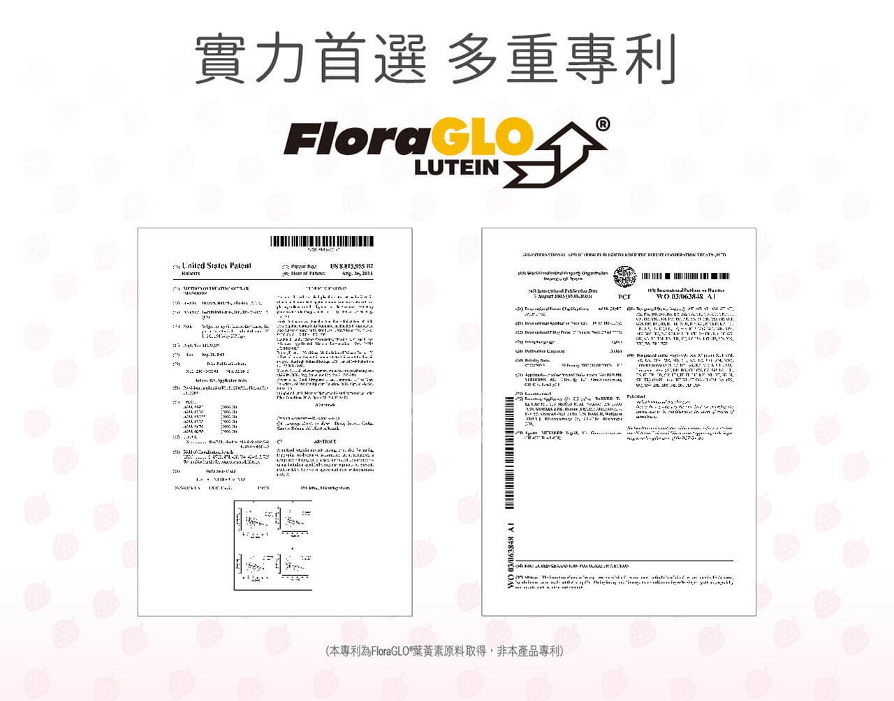 ✔️添加專利FloraGLO®游離型葉黃素6mg,多國專利認證,給您高含量機能補給。