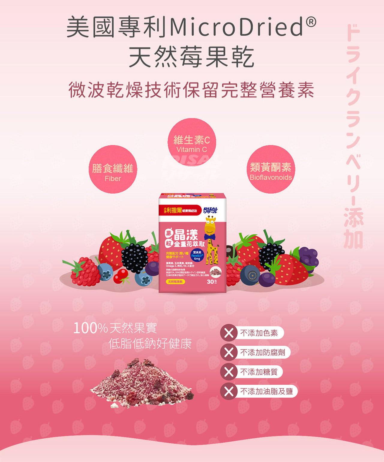✔️使用藍莓果汁粉、專利纖維及鈣粉為基底,並添加美國專利莓果乾,特殊乾燥技術保留天然莓果風味,給您全方位健康機能補給。
