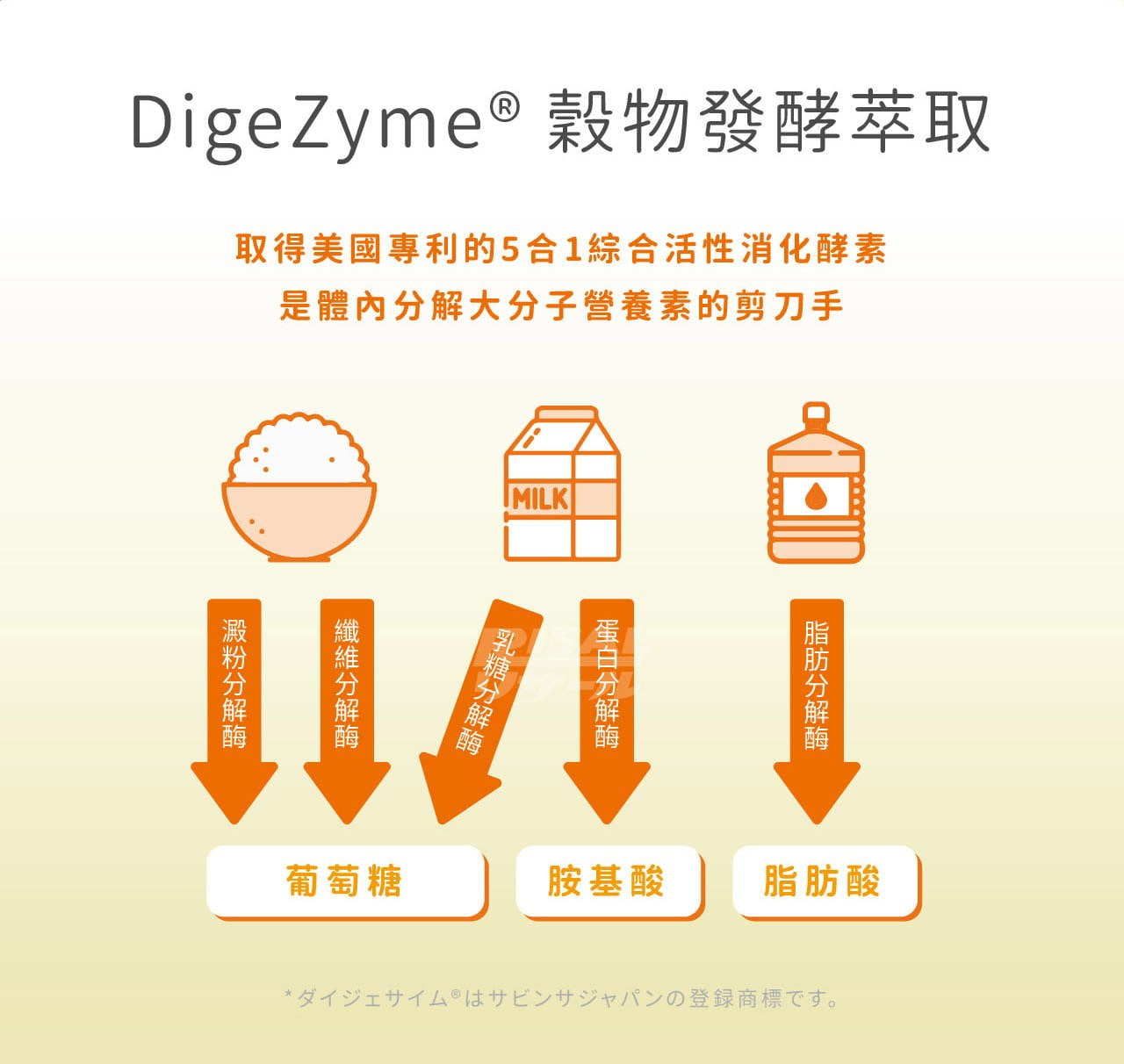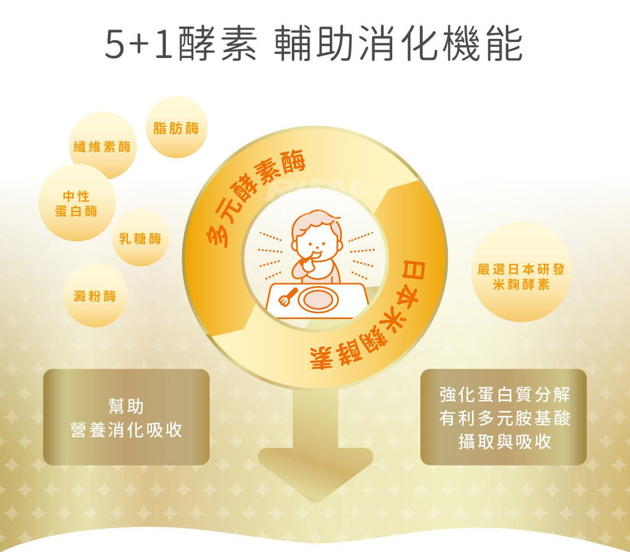 ✔️添加多元酵素酶:澱粉酶、乳糖酶、脂肪酶、纖維素酶、中性蛋白酶,幫助營養消化吸收,減少負擔。