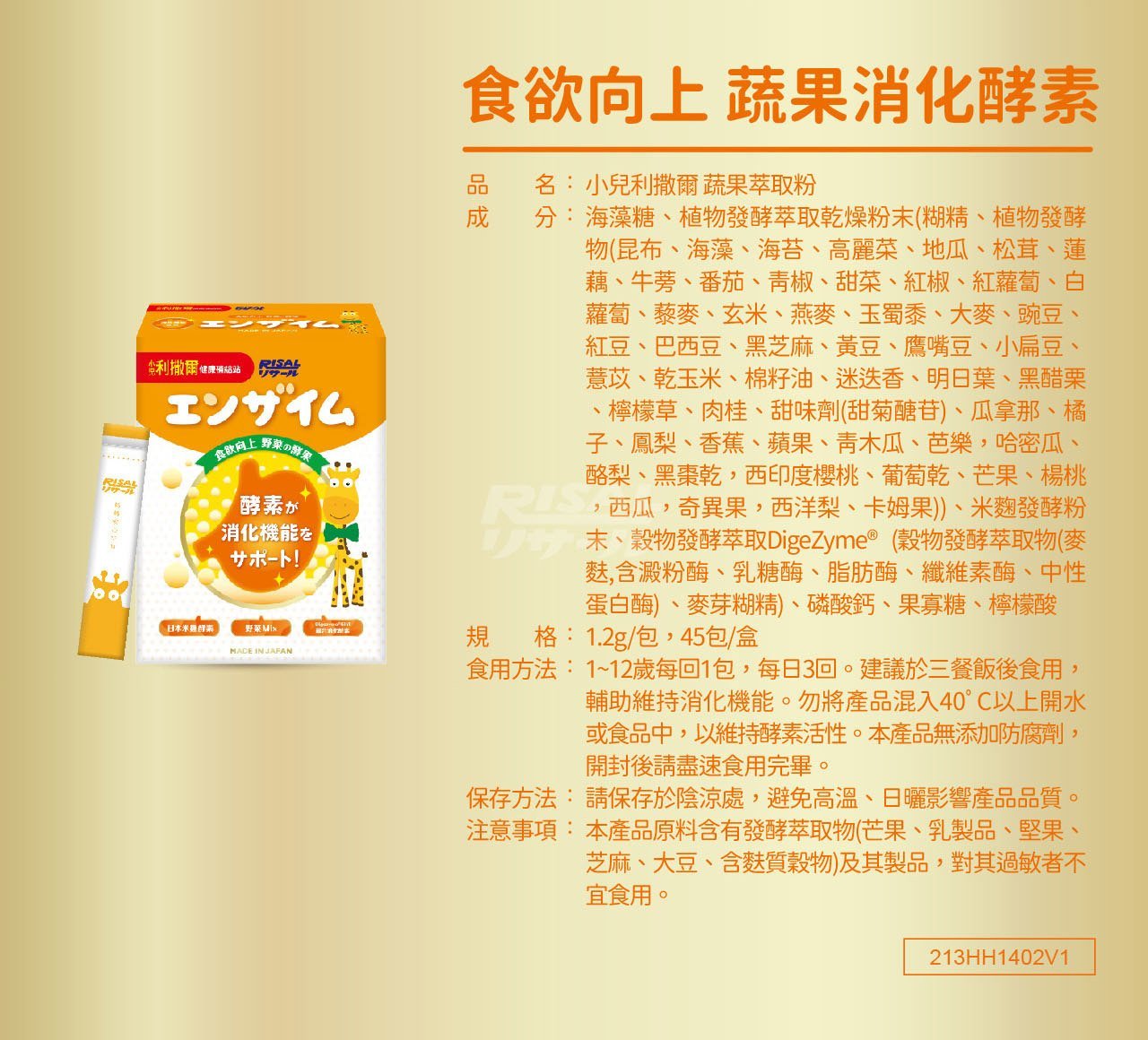 【RISAL小兒利撒爾】食欲向上 蔬果消化酵素 蔬果萃取粉45入