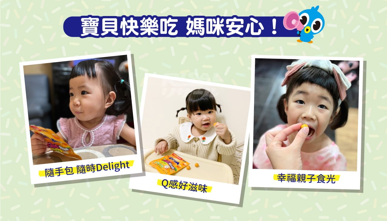 蔗糖、麥芽糖、椰子油、明膠、柳橙濃縮汁、檸檬酸調味劑、DHA藻油含DHA 35%、香料、天然食用色素(薑黃色素、花青素)、棕櫚蠟食品製造用劑 |