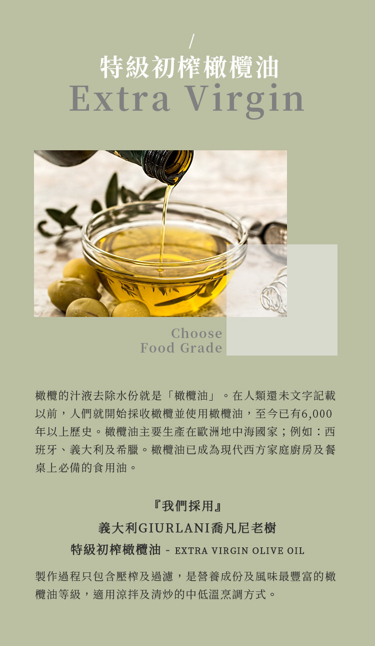 所有原料採用食用級油品,並遵循古法低溫製皂,保留油品中的營養成份,滋養您的每一寸肌膚。非皂基製成,不含酒精,故富含甘油的保濕功效,洗淨不乾澀