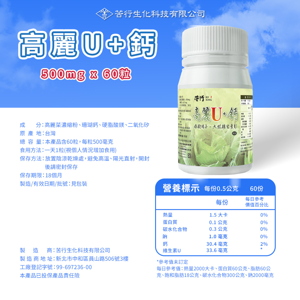 高麗菜濃縮粉、珊瑚鈣、硬脂酸鎂、二氧化矽 |