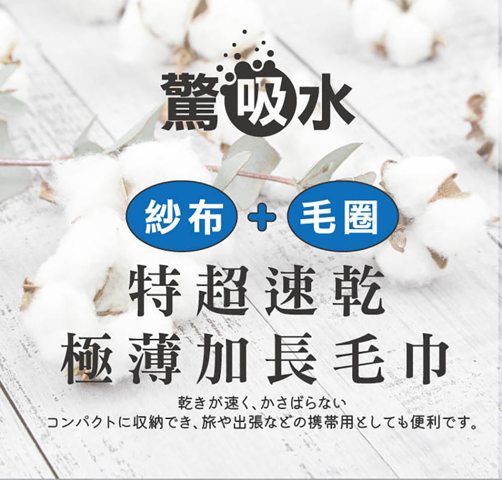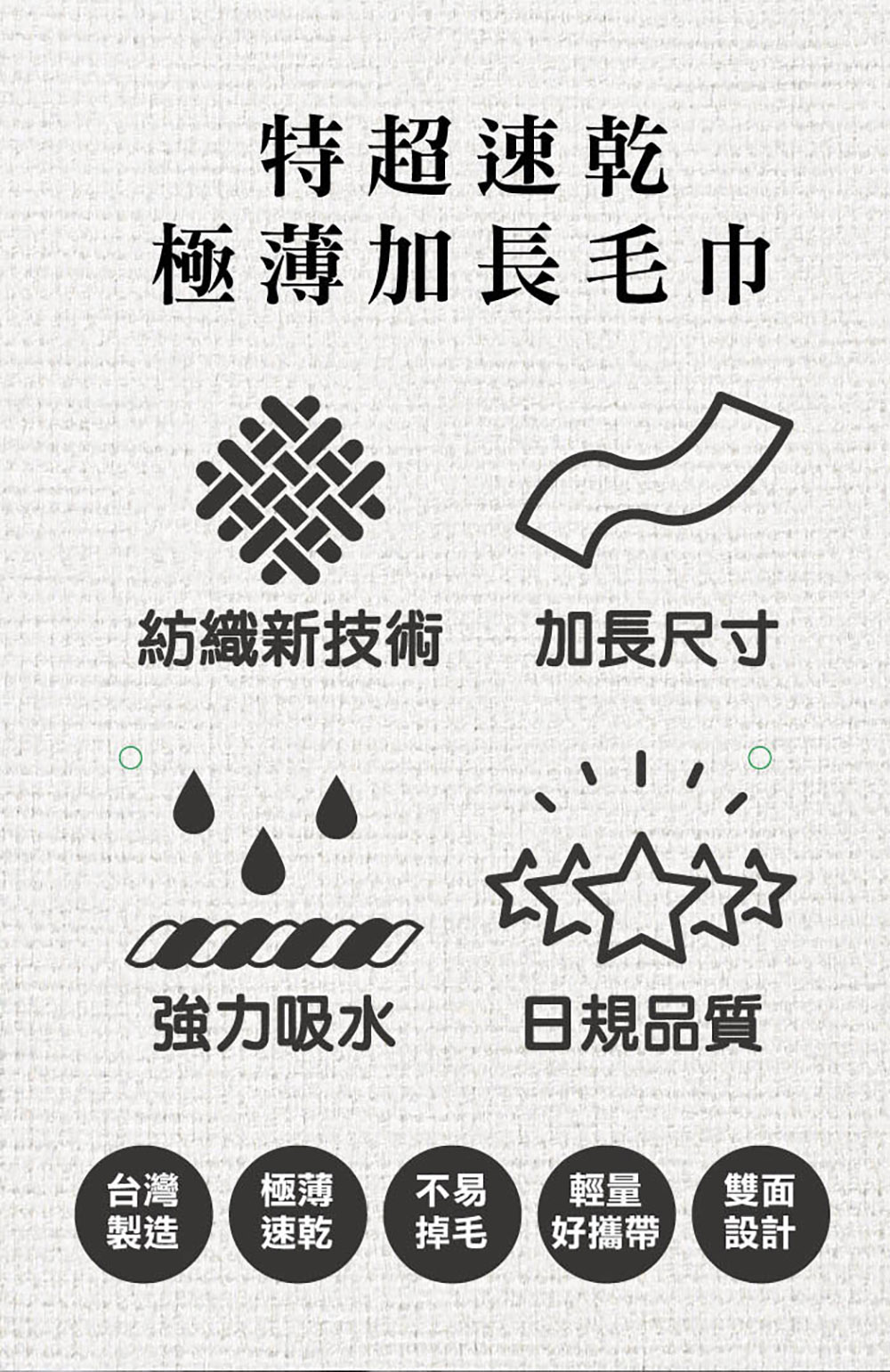 【驚吸水】台灣製 超速乾 極薄加長毛巾 34x110cm