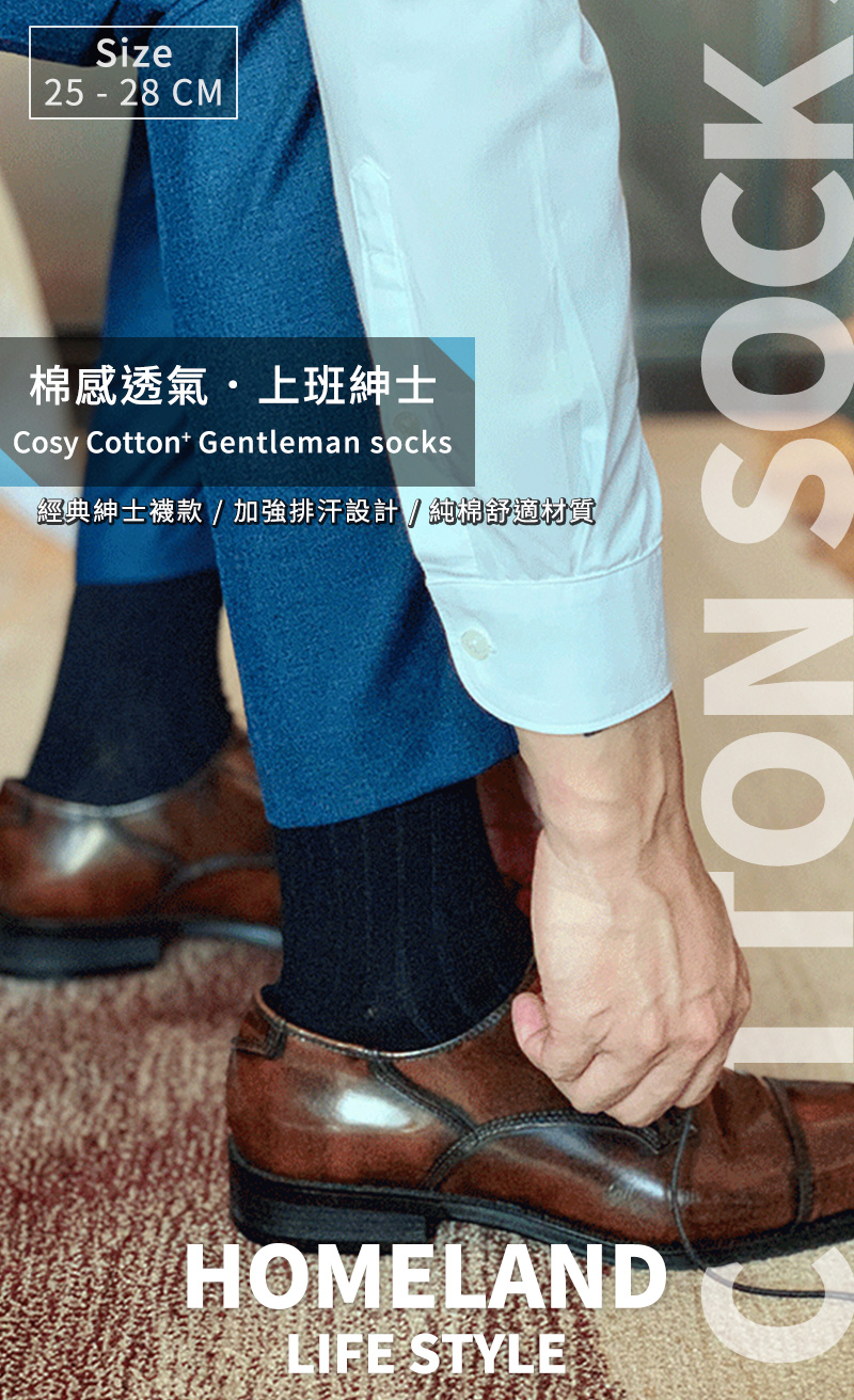 【HOMELAND】經典紳士上班純棉中筒襪 25-28 cm