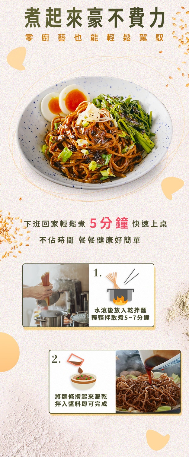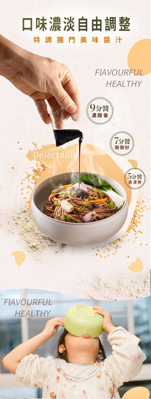麵條:小麥粉、水、小麥蛋白、黃豆粉(非基因改造)、大麥粉、黑豆粉、鹽 |