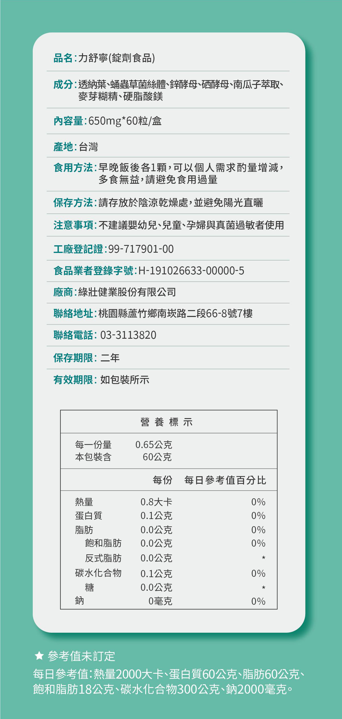 650毫克*60錠 |