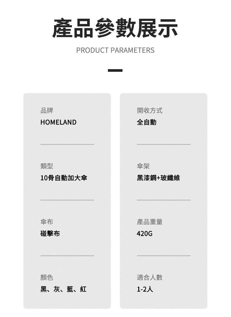 【HOMELAND】經典10骨自動傘 加大105cm傘面