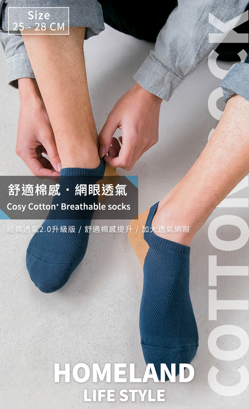 【HOMELAND】夏季透氣網眼混色男襪 25-28 cm